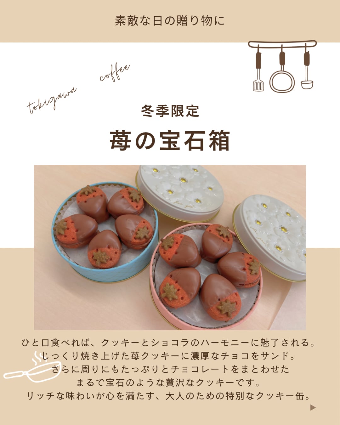 クッキー缶は1つ1つ手作業でお作りしています。生まれてくるクッキー達がどれも自由気ままな形をしているため同じクッキー缶の作成ができません。お手元に届くクッキー缶はどれも世界に1つのクッキー缶になります。どんな子がお手元にやってくるのかはお楽しみ♡都幾川珈琲の世界感を楽しんでいただけたら嬉しいです。