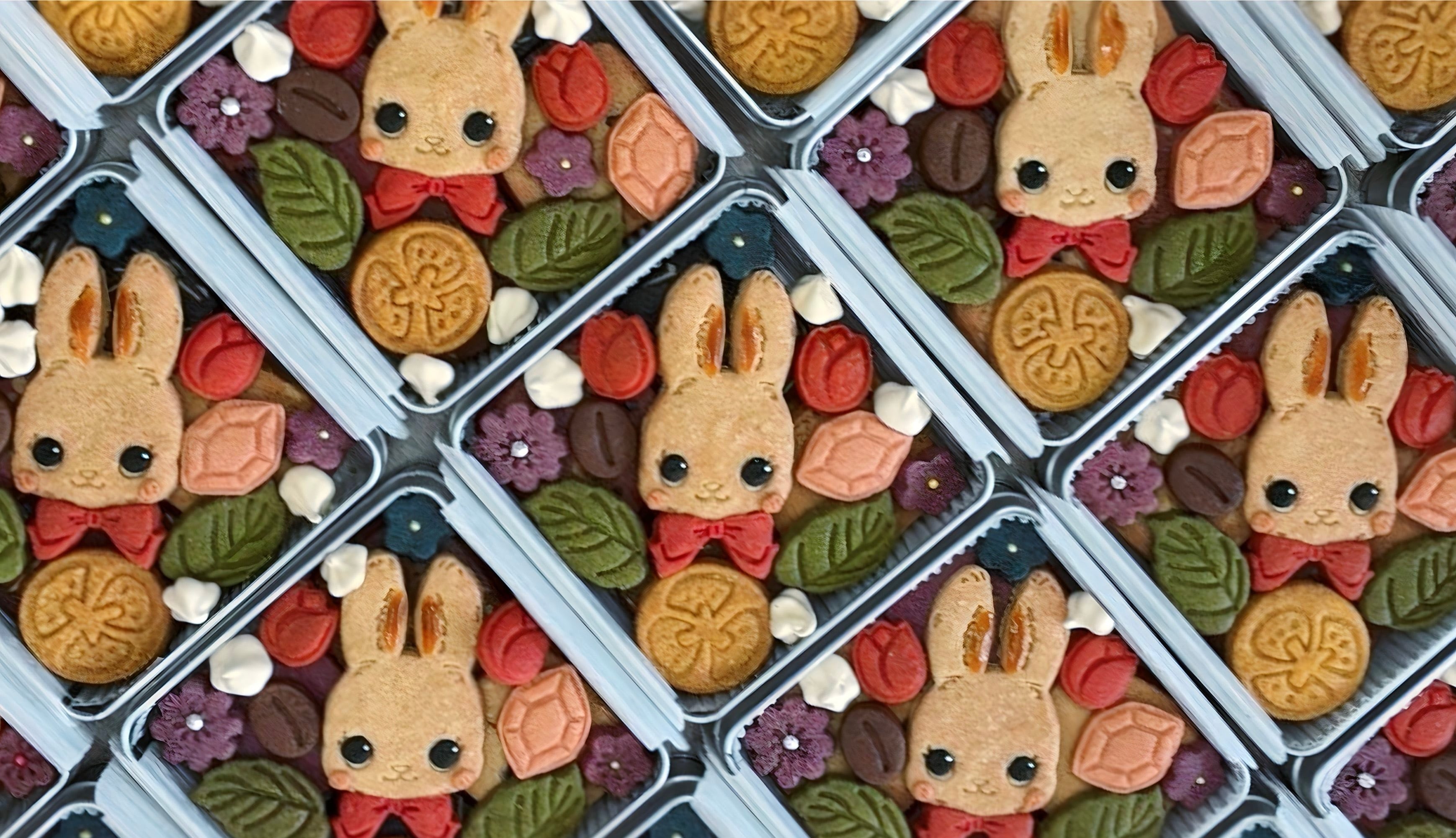 一般的なクッキーの焼き時間は10〜17分ほどですが、1番上のデザインクッキーは1時間以上じっくりと焼き上げています。
