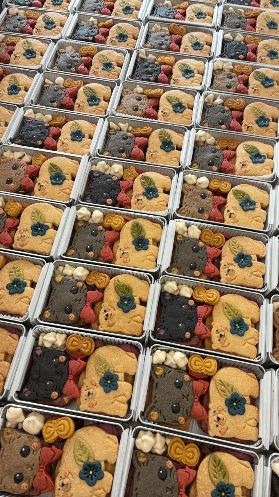 一般的なクッキーの焼き時間は10〜17分ほどですが、1番上のデザインクッキーは1時間以上じっくりと焼き上げています。