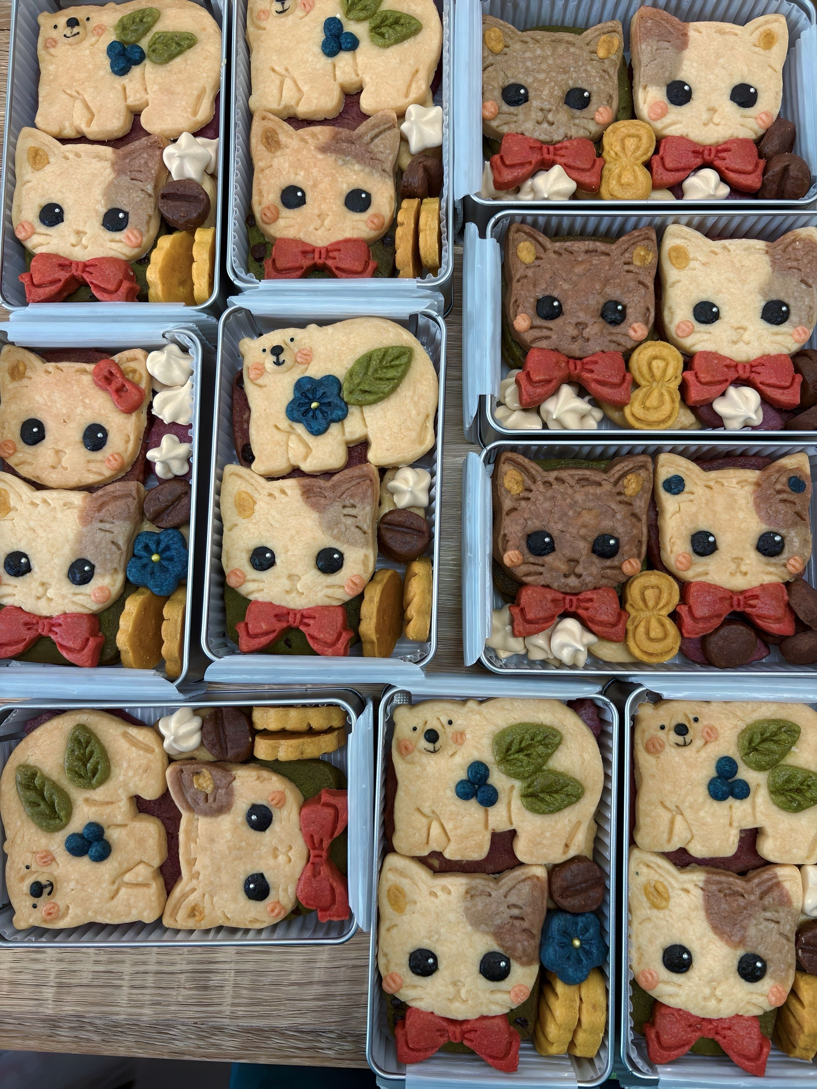 一般的なクッキーの焼き時間は10〜17分ほどですが、1番上のデザインクッキーは1時間以上じっくりと焼き上げています。