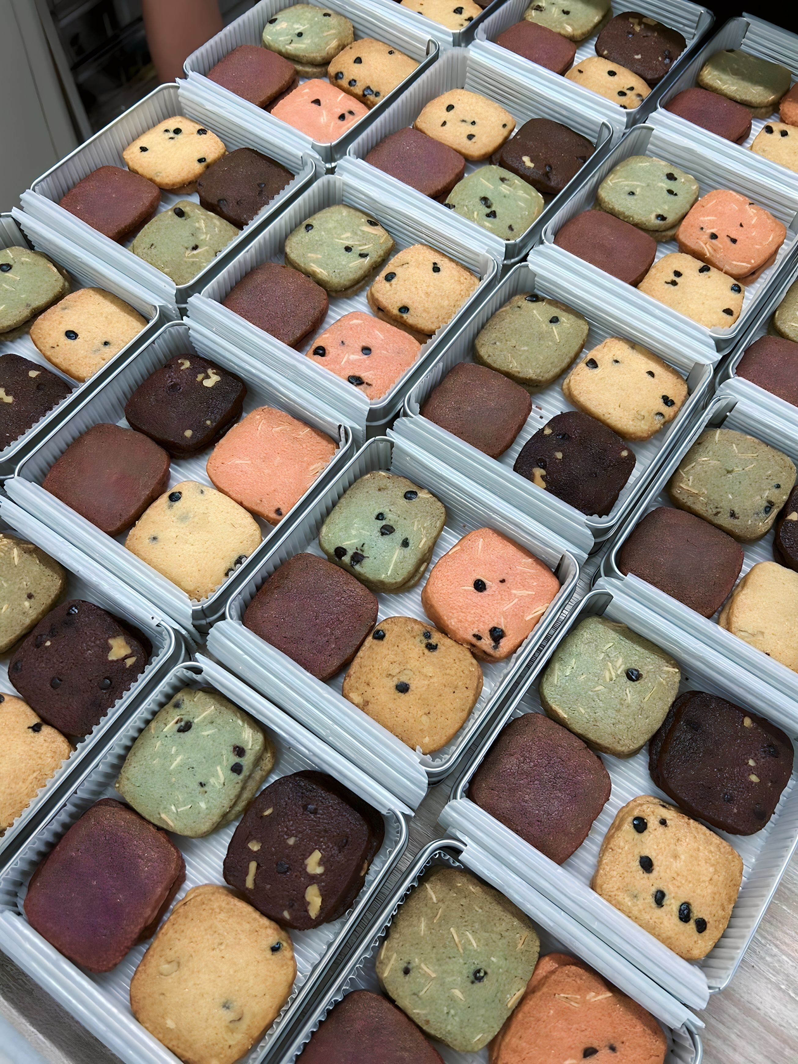 国産小麦、きび砂糖、北海道バター、卵、天日塩、有機バニラペースト、ごま、くるみ、アーモンド、チョコチップ、
