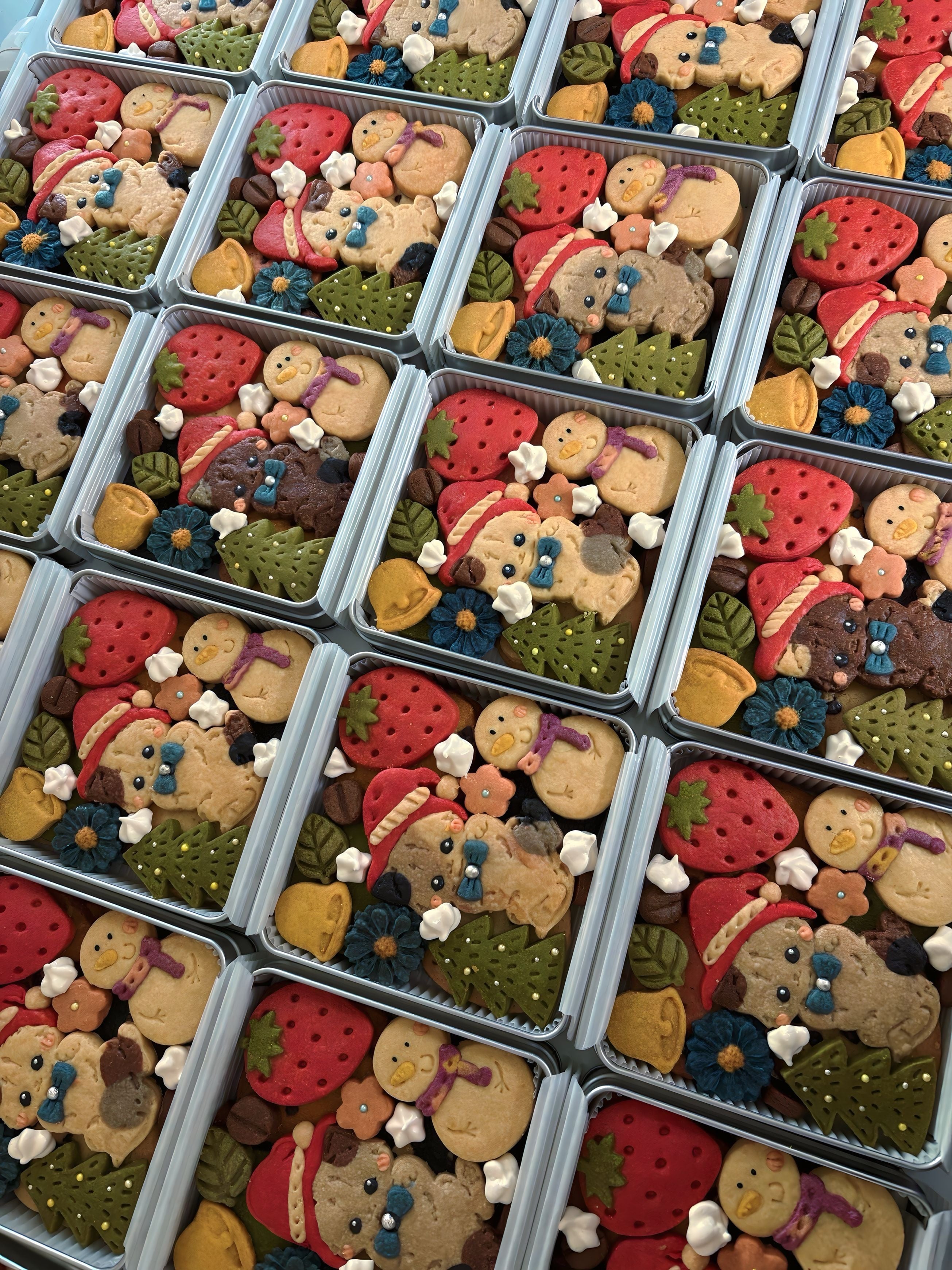 一般的なクッキーの焼き時間は10〜17分ほどですが、1番上のデザインクッキーは1時間以上じっくりと焼き上げています。