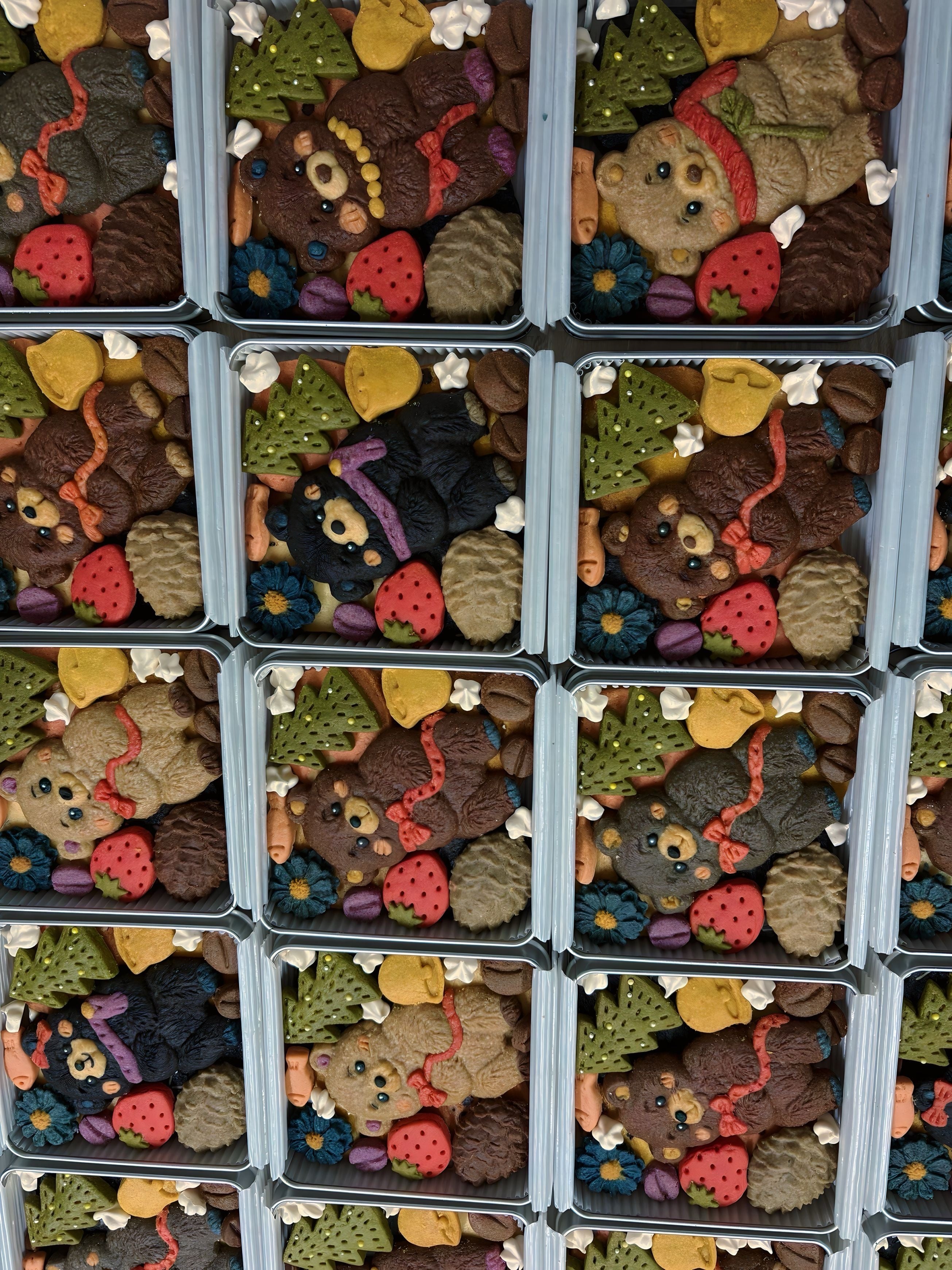 一般的なクッキーの焼き時間は10〜17分ほどですが、1番上のデザインクッキーは1時間以上じっくりと焼き上げています。