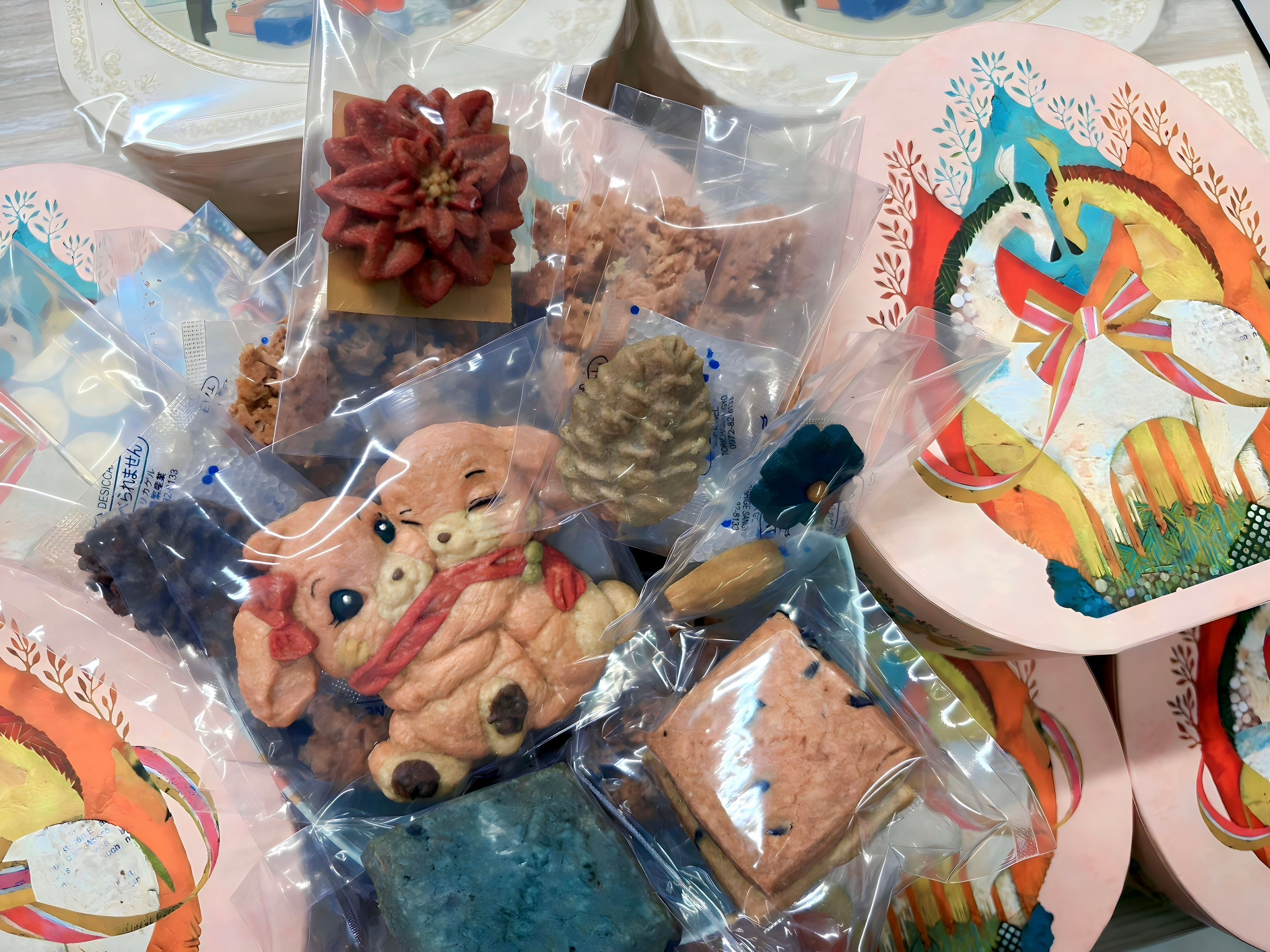 一般的なクッキーの焼き時間は10〜17分ほどですが、1番上のデザインクッキーは1時間以上じっくりと焼き上げています。