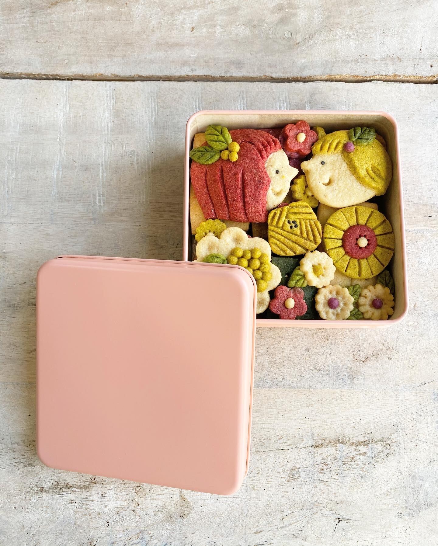 お散歩を楽しむ子どもたちの楽しげな声が聞こえてきそうな、開けるとほっこりするクッキー缶です。