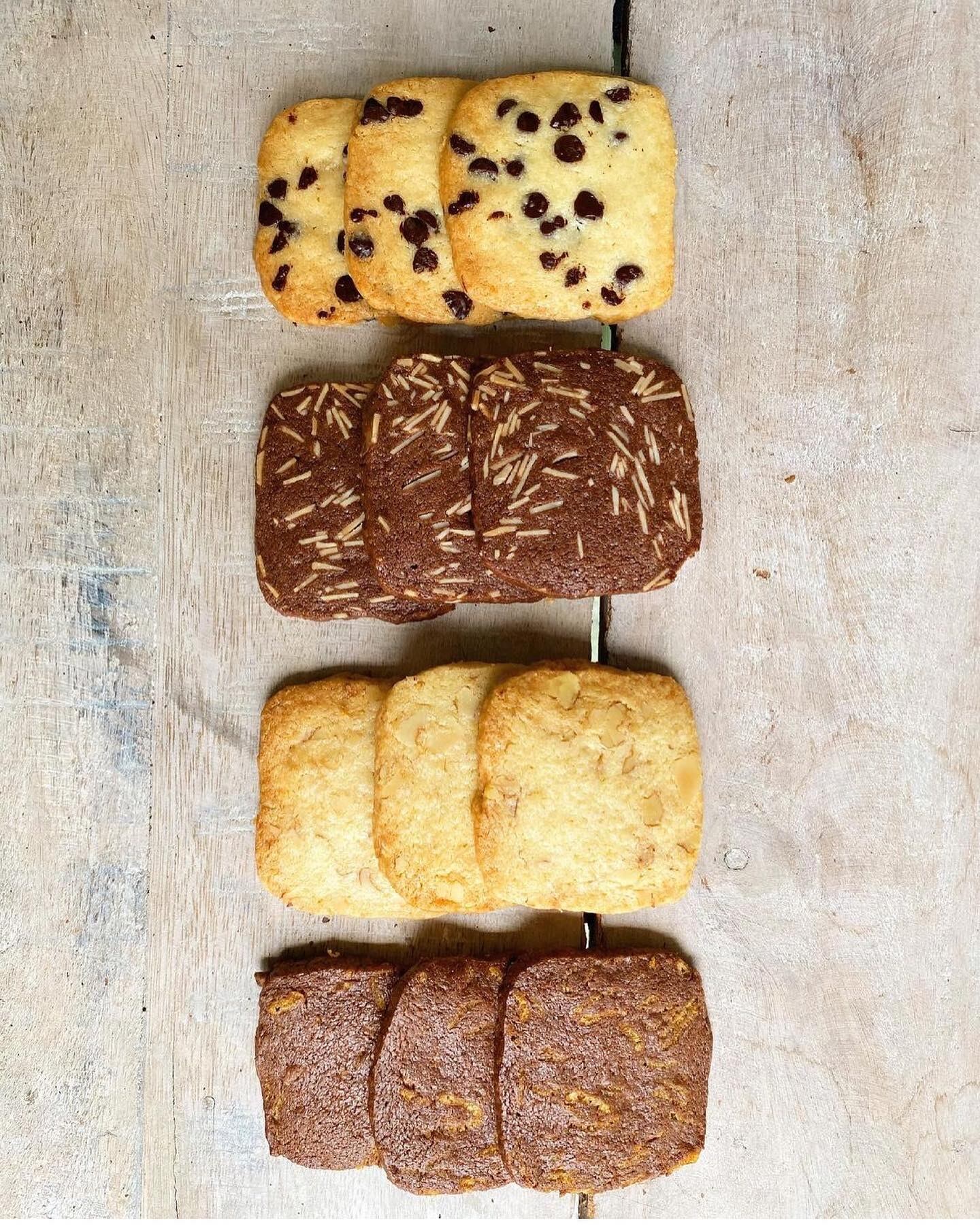 熊本県産小麦、きび砂糖、北海道バター、卵、天日塩、有機バニラペースト、ごま、くるみ、アーモンド、チョコチップ