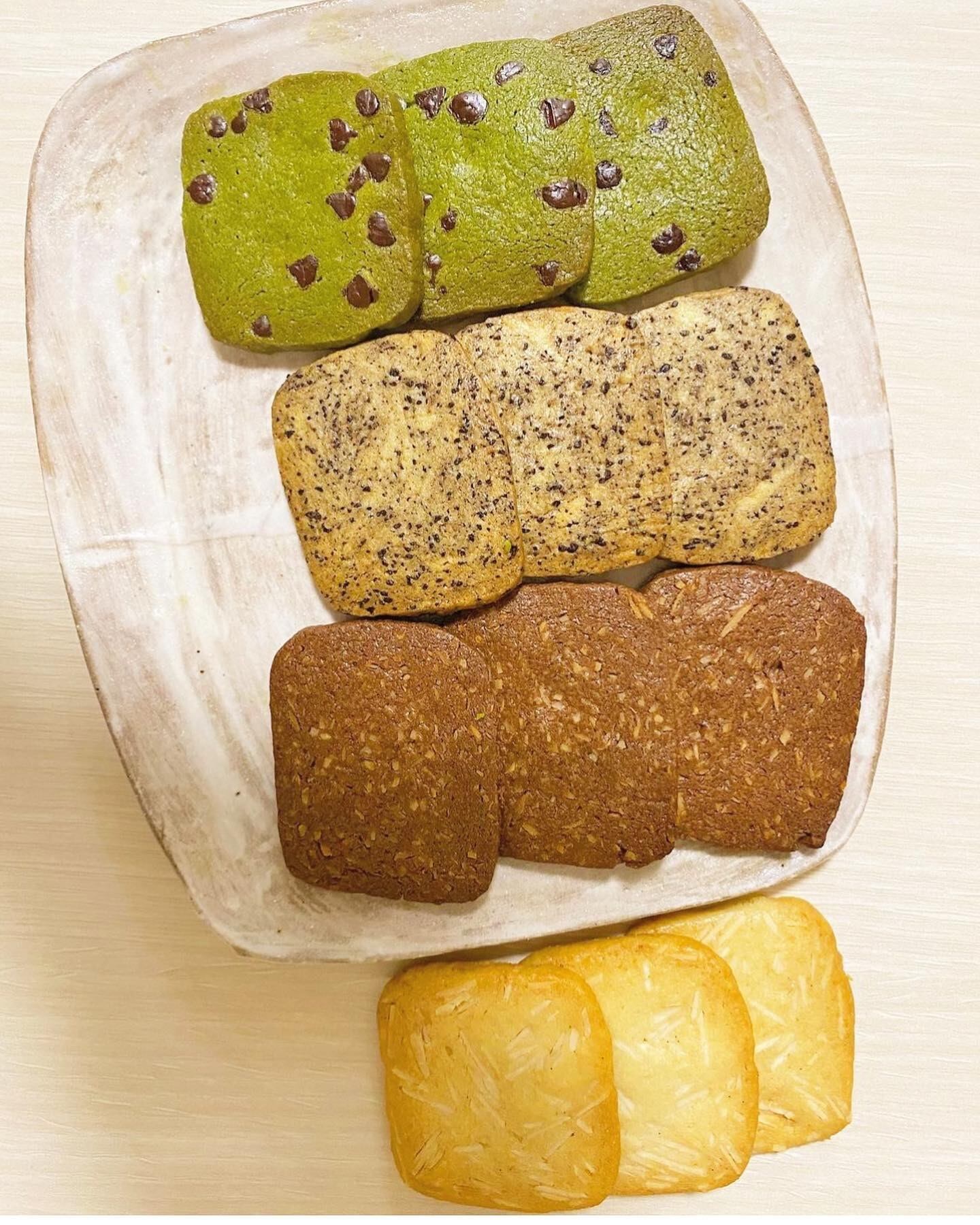 熊本県産小麦、きび砂糖、北海道バター、卵、天日塩、有機バニラペースト、ごま、くるみ、アーモンド、チョコチップ