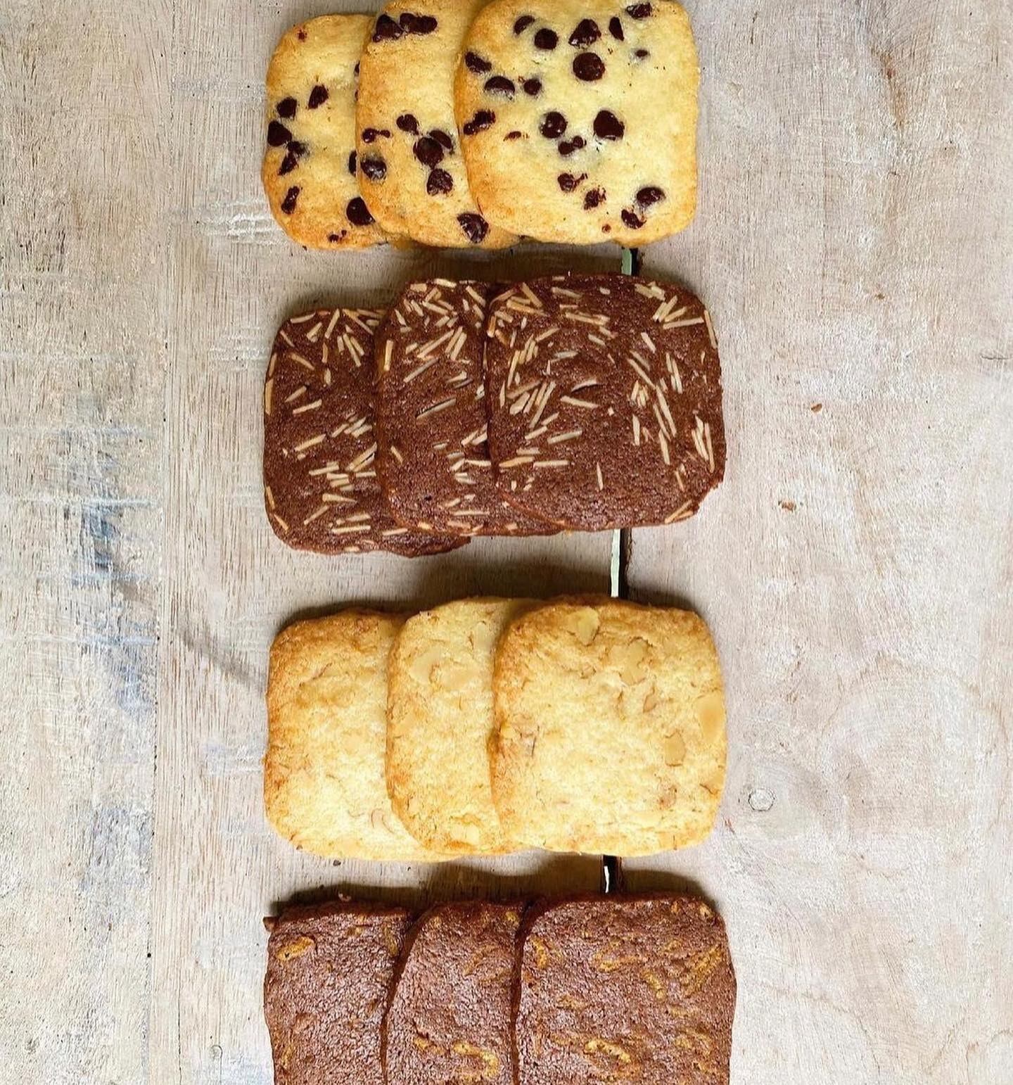 国産小麦、きび砂糖、北海道バター、卵、天日塩、有機バニラペースト、ごま、くるみ、アーモンド、チョコチップ