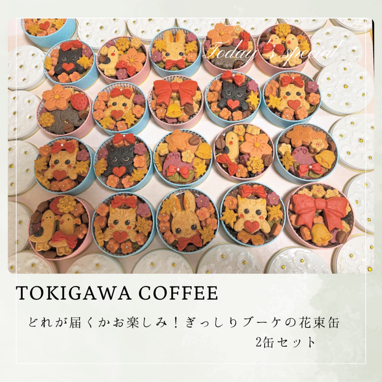 こちらは34セット限定の特別クッキー缶になります。どれが届くのかはお楽しみ。わくわくしながら待っていただけたらと思います。