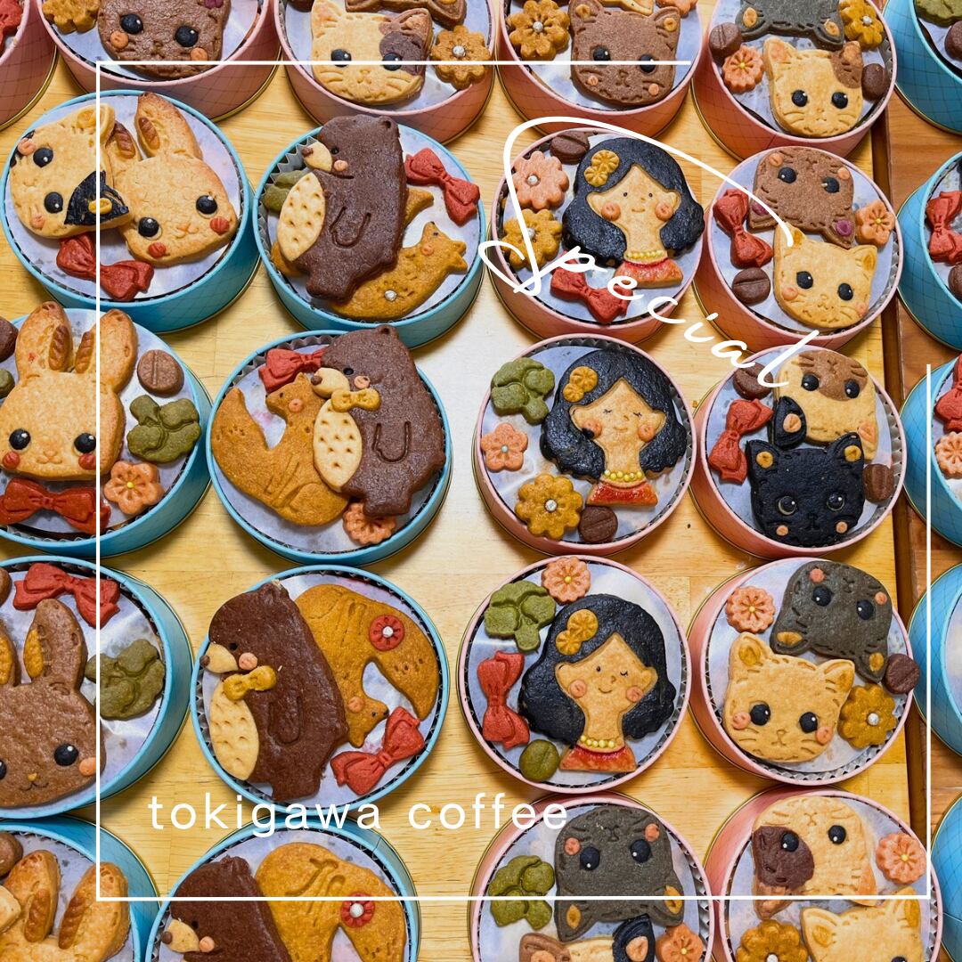 クッキー缶は1つ1つ手作業でお作りしています。生まれてくるクッキー達がどれも自由気ままな形をしているため同じクッキー缶の作成ができません。お手元に届くクッキー缶はどれも世界に1つのクッキー缶になります。どんな子がお手元にやってくるのかはお楽しみ!都幾川珈琲の世界感を楽しんでいただけたら嬉しいです。