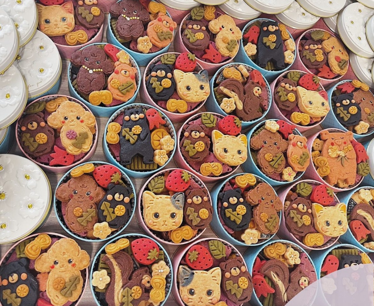 一般的なクッキーの焼き時間は10〜17分ほどですが、1番上のデザインクッキーは1時間以上かけてじっくりと焼き上げています。
