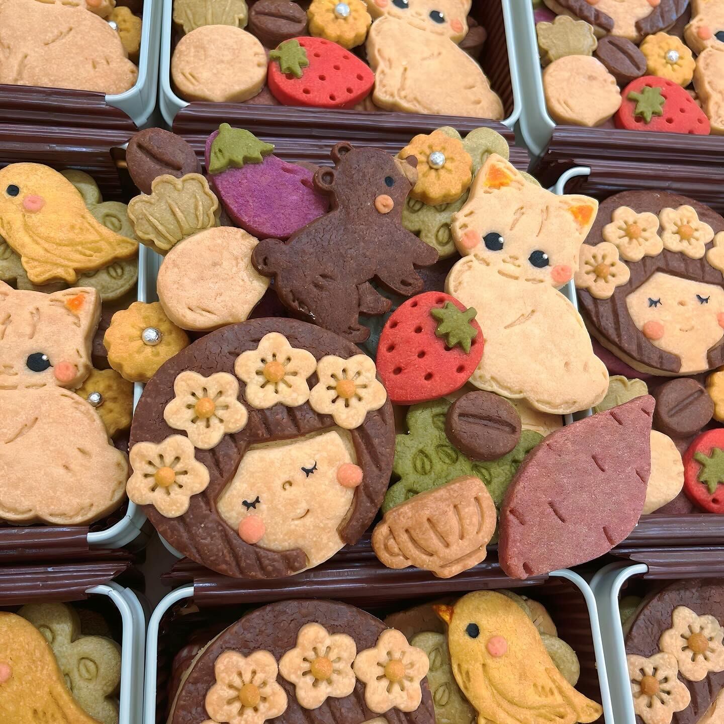 一般的なクッキーの焼き時間は10〜17分ほどですが、1番上のデザインクッキーは1時間以上じっくりと焼き上げています。