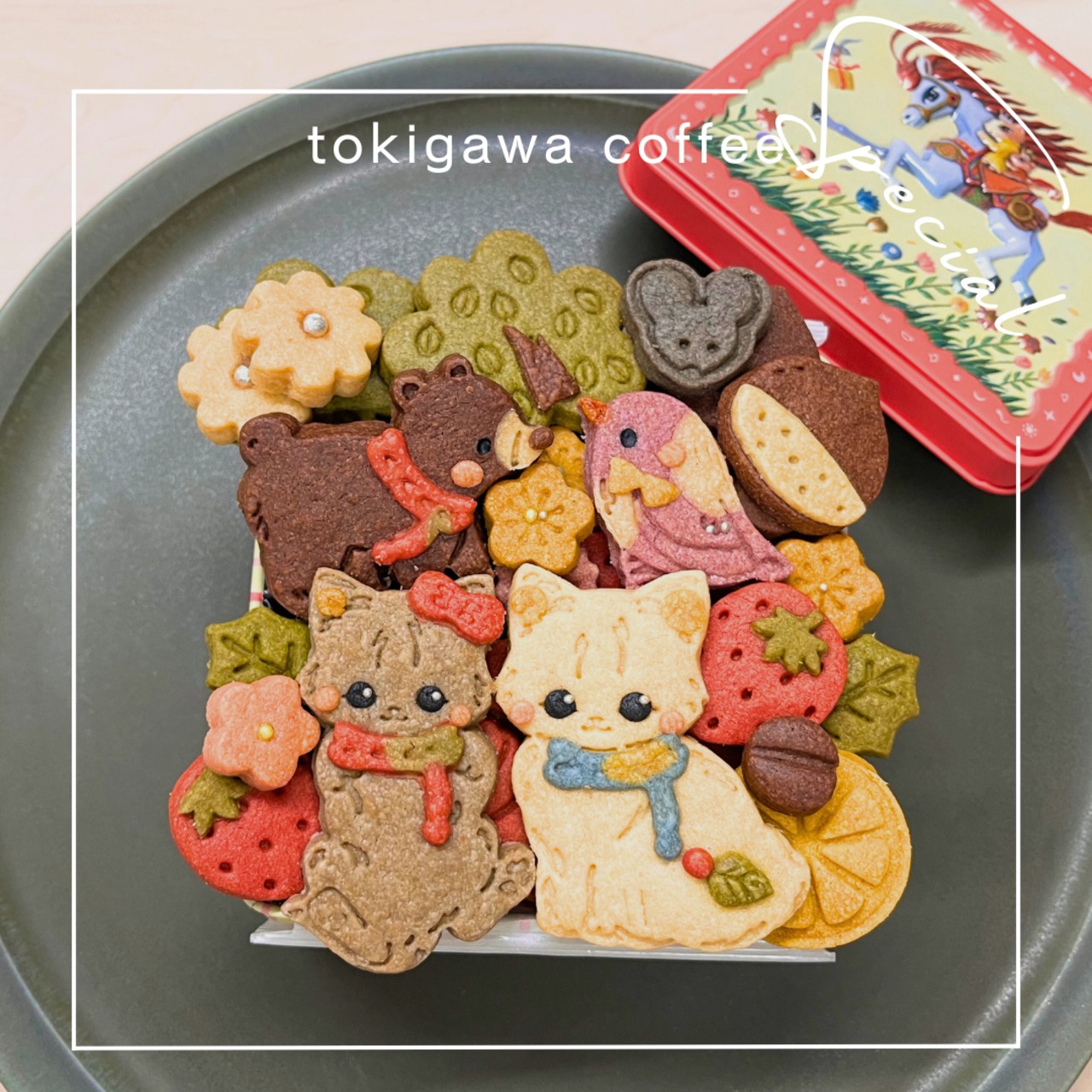 クッキー缶は1つ1つ手作業でお作りしています。生まれてくるクッキー達がどれも自由気ままな形をしているため同じクッキー缶の作成ができません。お手元に届くクッキー缶はどれも世界に1つのクッキー缶になります。どんな子がお手元にやってくるのかはお楽しみ!都幾川珈琲の世界感を楽しんでいただけたら嬉しいです。